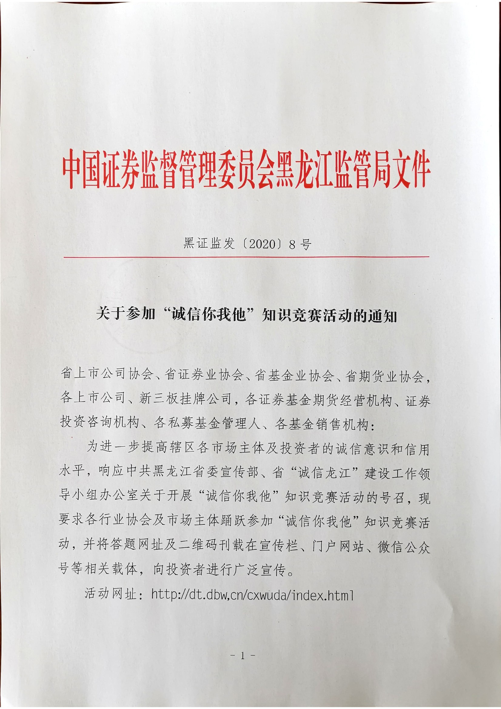 关于参加“诚信你我他”知识竞赛活动的通知